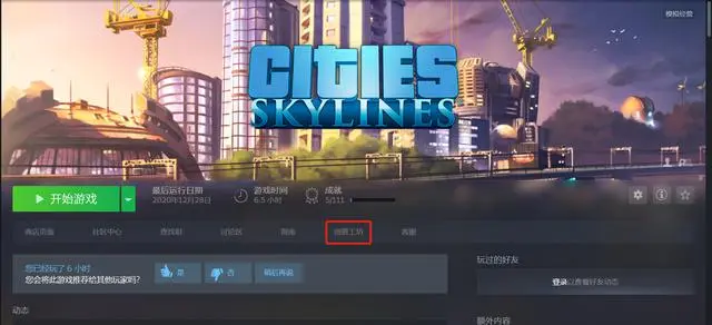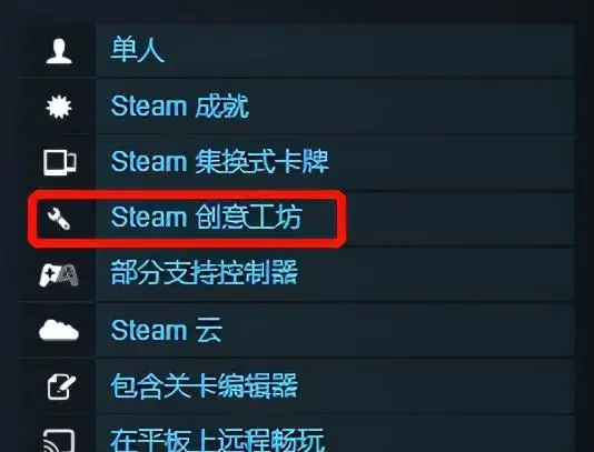 找到并点击游戏详情页上方的“创意工坊”,进入该游戏的steam创意工坊。