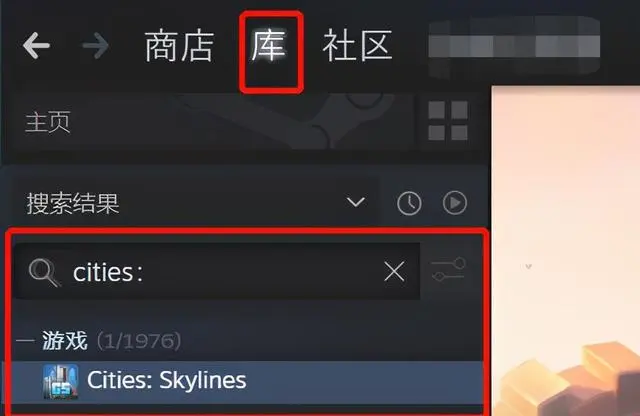 打开steam客户端,点击左上角“库”搜索并找到想要使用steam创意工坊的游戏。