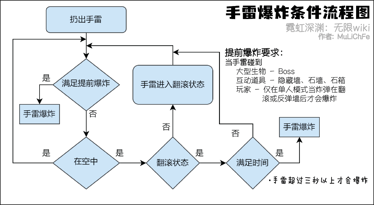 手雷爆炸条件奠定了手雷的基础,但是知识点简单易懂,又不懂得玩家看一图流即可: