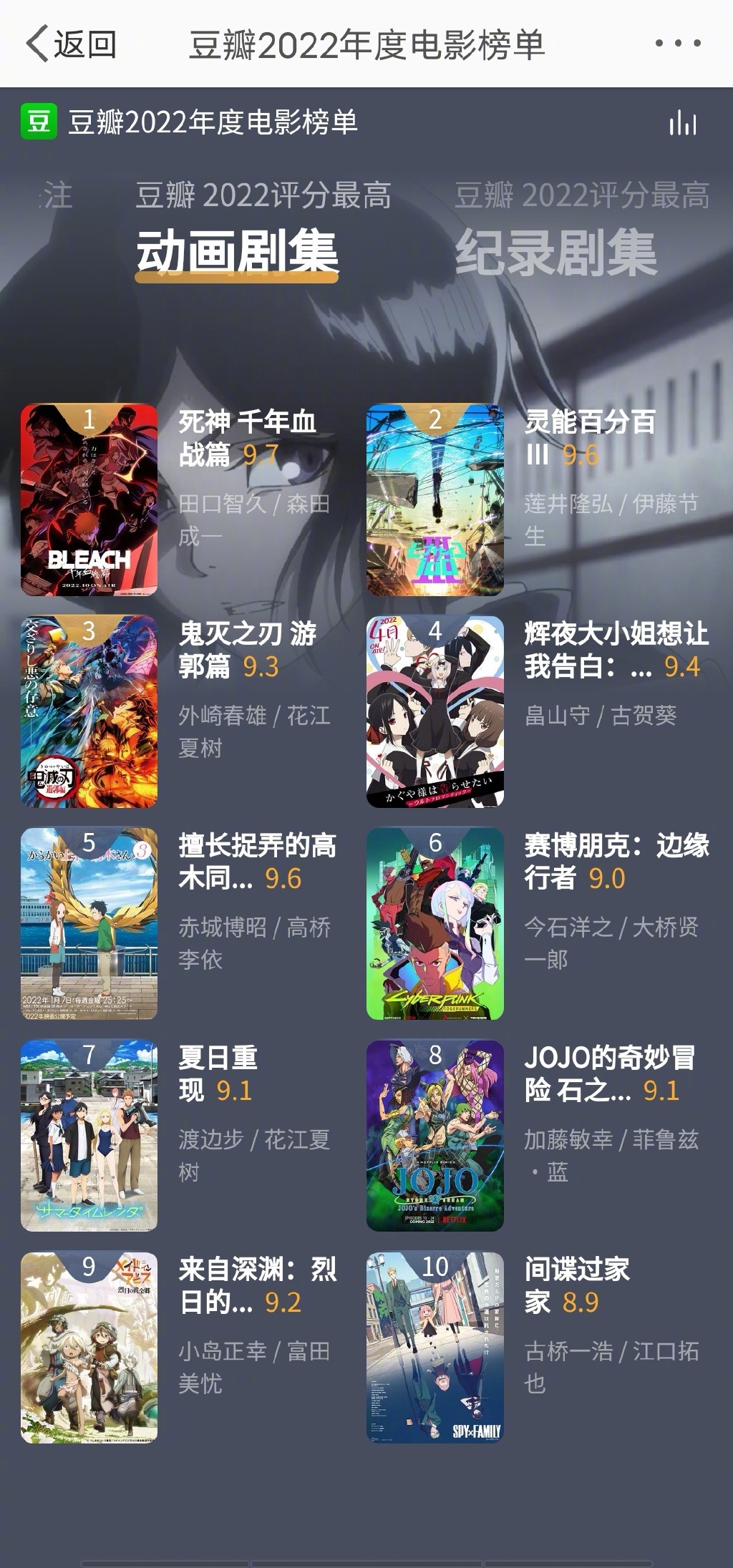 2022年度高分动画排名介绍都已经分享在上面,感兴趣的小伙伴可以参考本篇攻略,希望能为各位玩家们带来帮助,想要了解更多游戏攻略及资讯请持续关注5gwan手游。