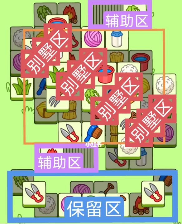 尽量还是必别墅区内互相消除为主,蓝色区有叠牌,但是不多,全部保留到后期使用。