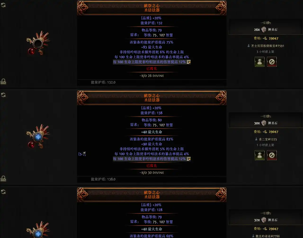 为什么必入:法系中期开始堆暴击,但能量护盾回复慢是通病,这件胸甲既加暴击又提速护盾回复,相当于 “站场能力直接拉满”,T3 地图 “废弃矿坑” 的 BOSS 掉落率不低,交易行也就 100 混沌石左右。