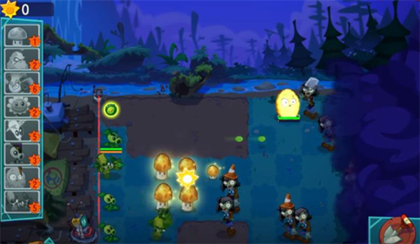 等玩到中后期,想强化输出?把第五排换成槲寄生投手!进化后能射火球,还带灼烧效果,能打到火枪手直线攻击不到的盲区,比如角落里的僵尸,高血量怪被烧着也掉血飞快,阵容容错率直接提升。要是偶尔阳光不够,前排没来得及种坚果墙,临时用土豆雷顶一下,放第一排前面,爆炸能拖延时间,等阳光够了再补坚果墙就行。