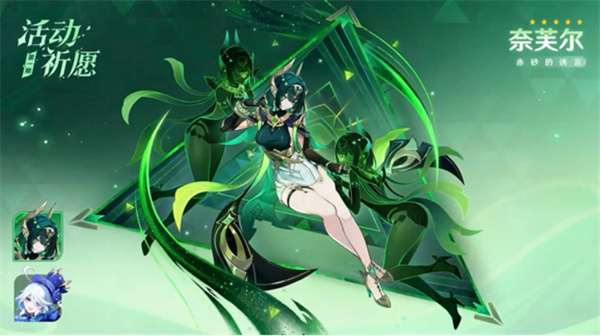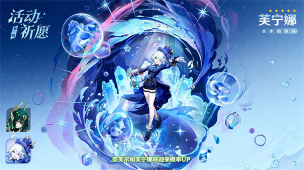 五星角色:奈芙尔(草系・法器,新角色)、芙宁娜(水系・单手剑,复刻)