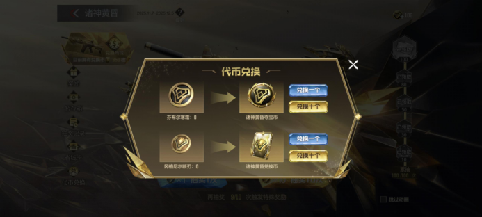 活动页面拥有“代币兑换”功能,限时CFM币购买的芬布尔寒霜币以及芬布尔寒霜币和冈格尼尔断刃币需要使用“代币兑换“功能,才可以在本期诸神黄昏夺宝中使用。