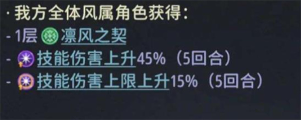 特定效果触发后,敌人承受高额风伤,同时为全体角色增加额外一层“凌风之契”