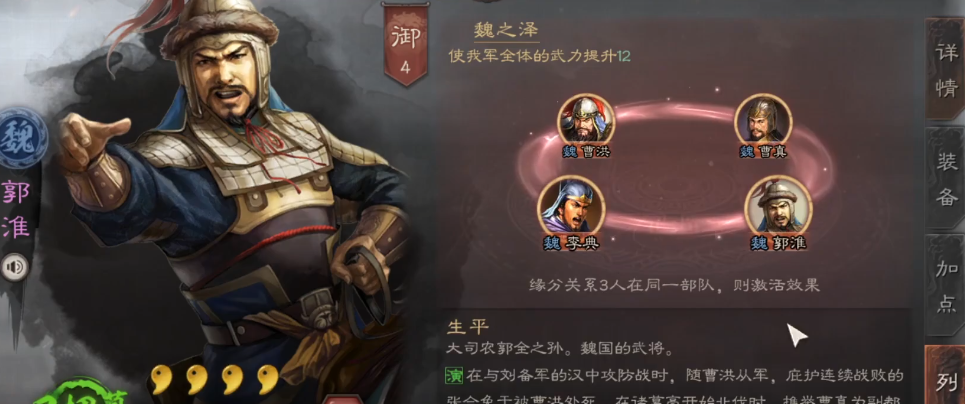 5GWAN手游网(www.5gwan.net)2026年01月04日:作为三国志战略版中魏国四星武将里的性价比之王,郭淮凭借自带战法“御敌屏障”的稳定群体减伤,成为平民玩家开荒及中期作