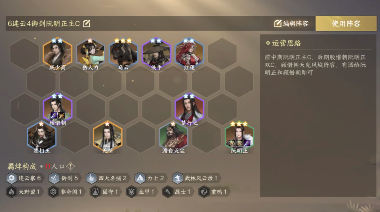 逆水寒手游御剑连云寨侠棋阵容攻略:豪侠执剑破云来