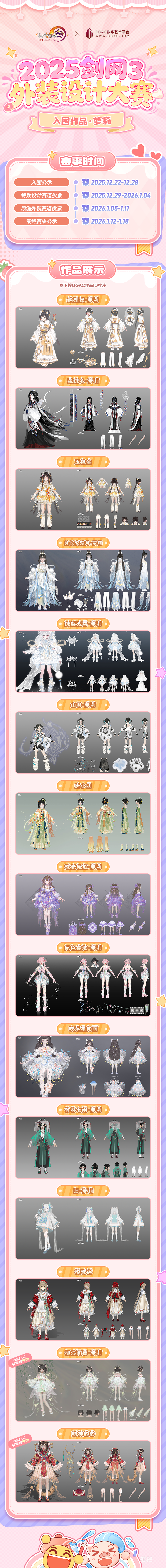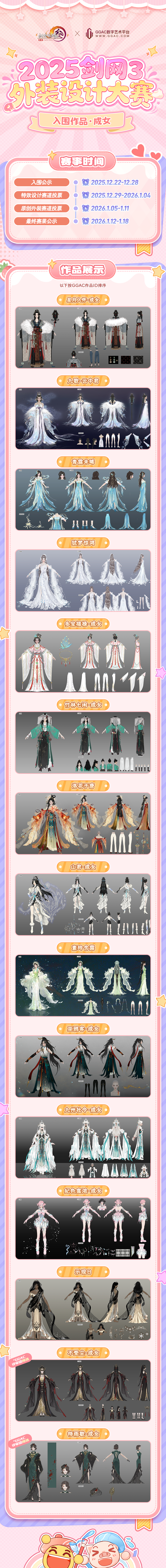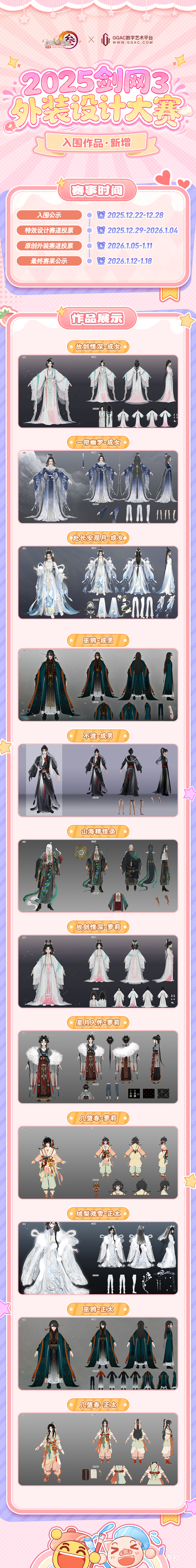 本次原创外装赛道佳作云集,将分体型评选最终奖项,并根据对应名次把四体型获奖作品组合为一套全新外装进行实装!最终赛果将于1月12日至1月18日进行公示!