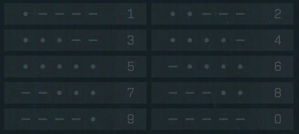 摩斯密码由“短音(·)”和“长音(-)”组成,每个数字对应一组信号,循环播放,听到停顿就是一组结束。
