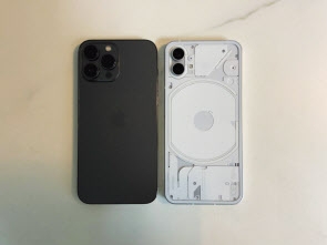 Apple iPhone13Pro Max(左)和 Nassing Phone One 的对比。