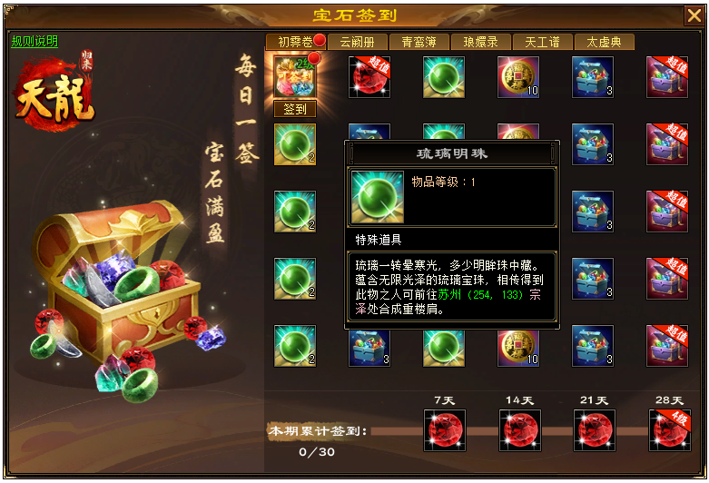 福利三:签到送琉璃明珠,可兑换重楼肩